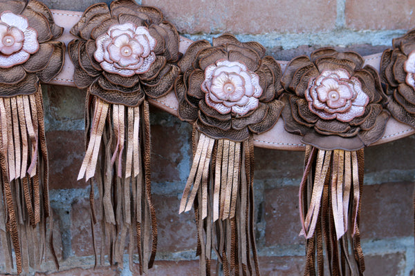 Wide Tripper Collar made by Marty Byrd, and we attach the flowers and fringe with extra heavy duty rivets. These are the same quality Collars we've always had!